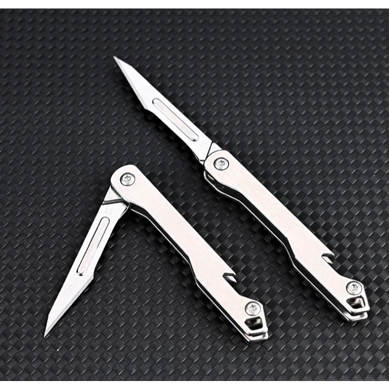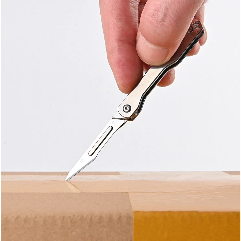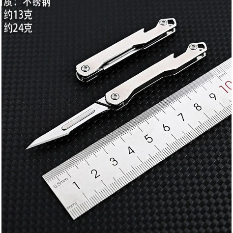 Dao gấp mini + 10 lưỡi cắt siêu sắc bén, thép carbon chống gỉ, treo móc khóa nhỏ gọn