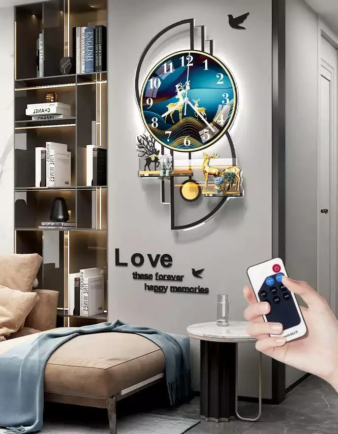 Đồng hồ treo tường hươu tài lộc có đèn LED trang trí nhà cửa, nhà tắm nhà bếp, spa, thẩm mỹ, tiệm nail, làm quà tặng tân gia decor phòng