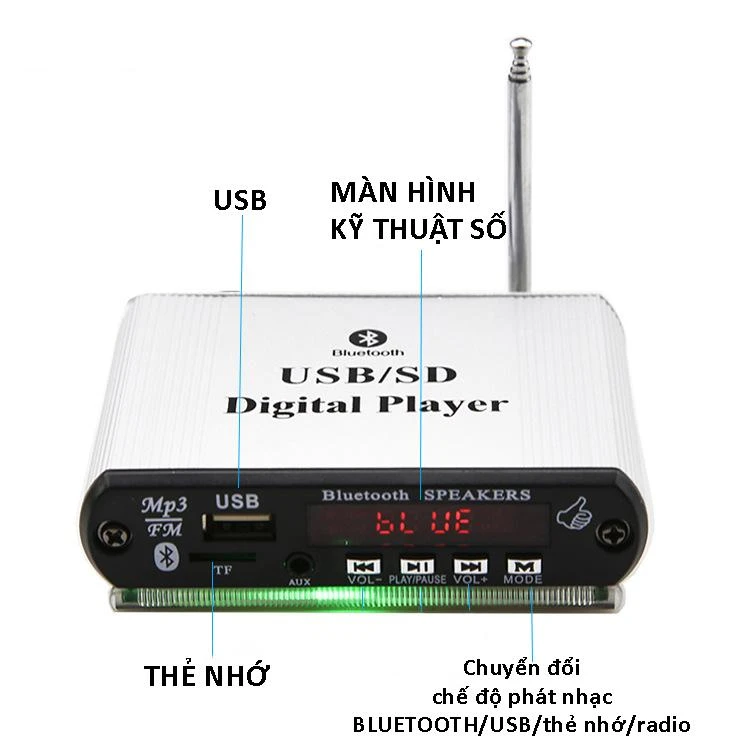 ✅ USB, thẻ nhớ TF – Phát nhạc trực tiếp không cần điện thoại!
