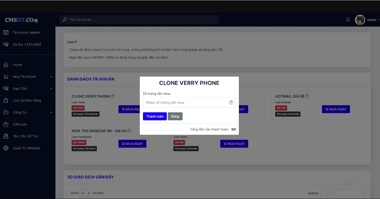 1. Upload Source Code lên máy chủ2. Upload Database vào máy chủ3. Config trong file config.php4. Đăng nhập vào hệ thống với tài khoản admin/admin