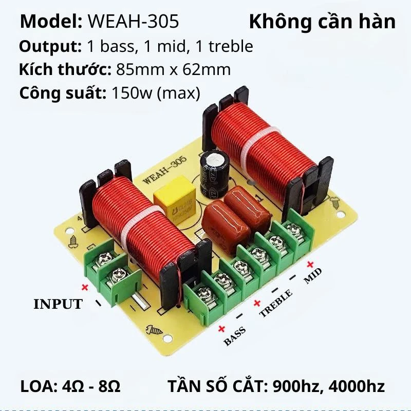 WEAH-305 mạch phân tần 3 đường tiếng HIFI stereo bass treble mid công suất 150w âm thanh nổi