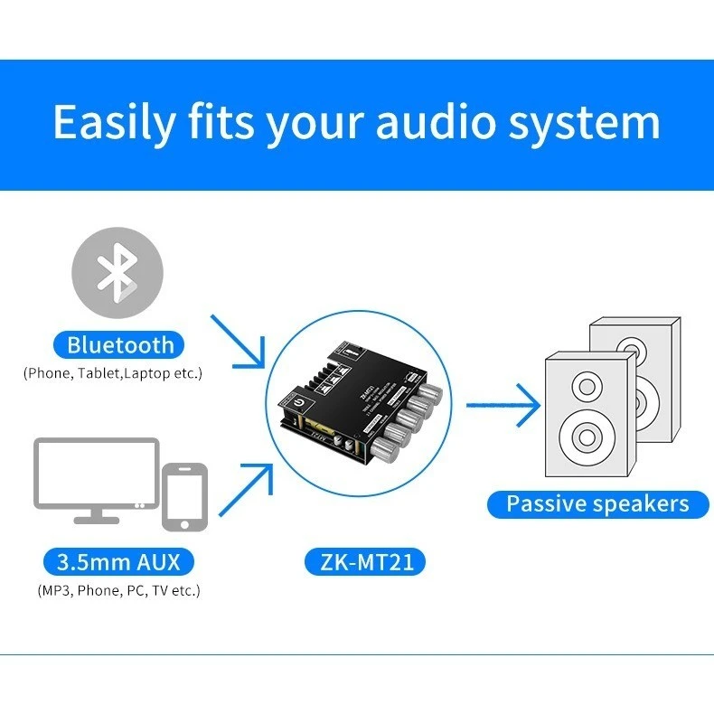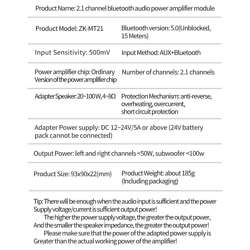 Mô-đun khuếch đại công suất này hỗ trợ 2 chế độ đầu vào, bao gồm bluetooth và Aux, bạn có thể đặt hàng theo nhu cầu của mình.